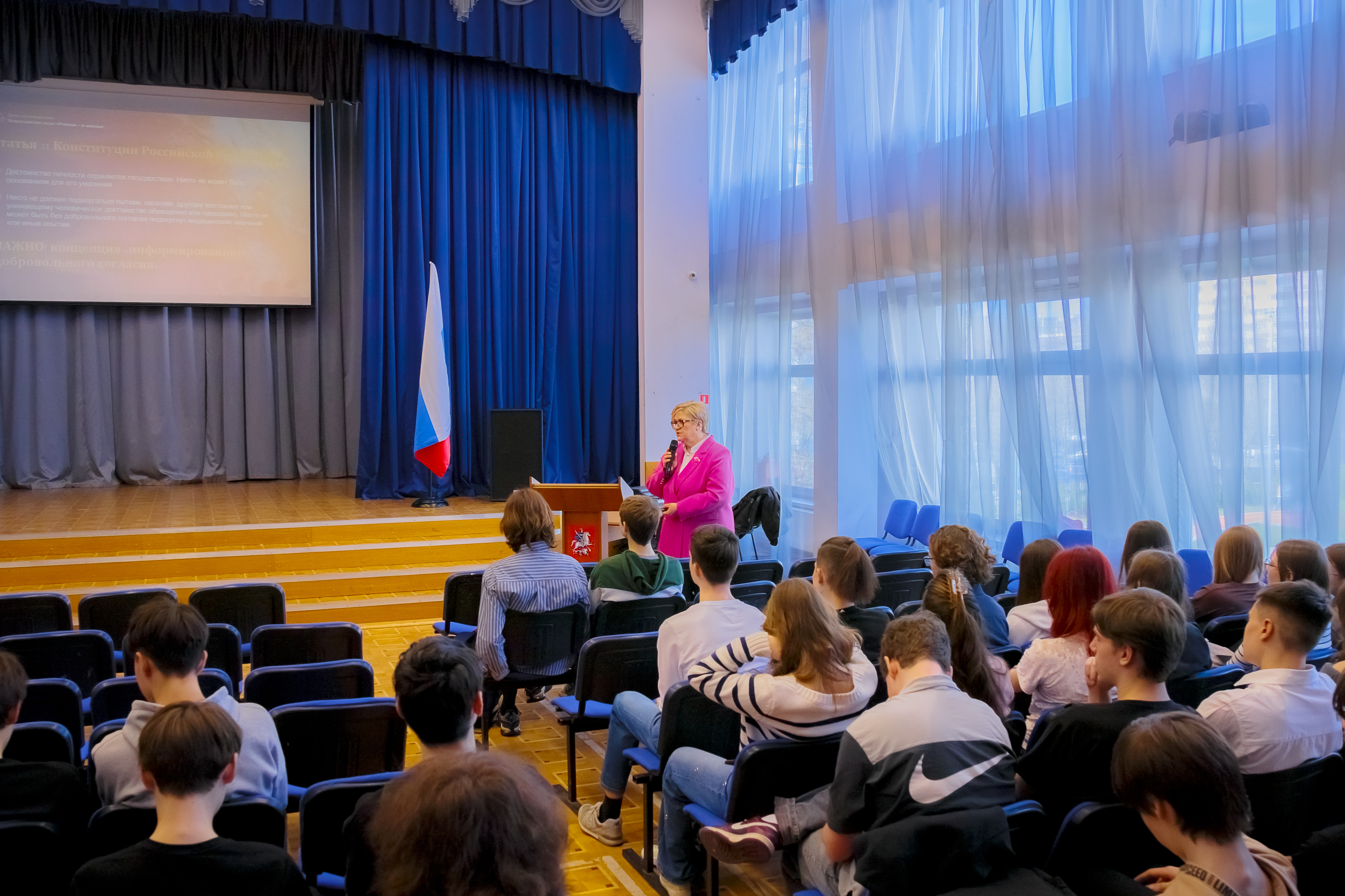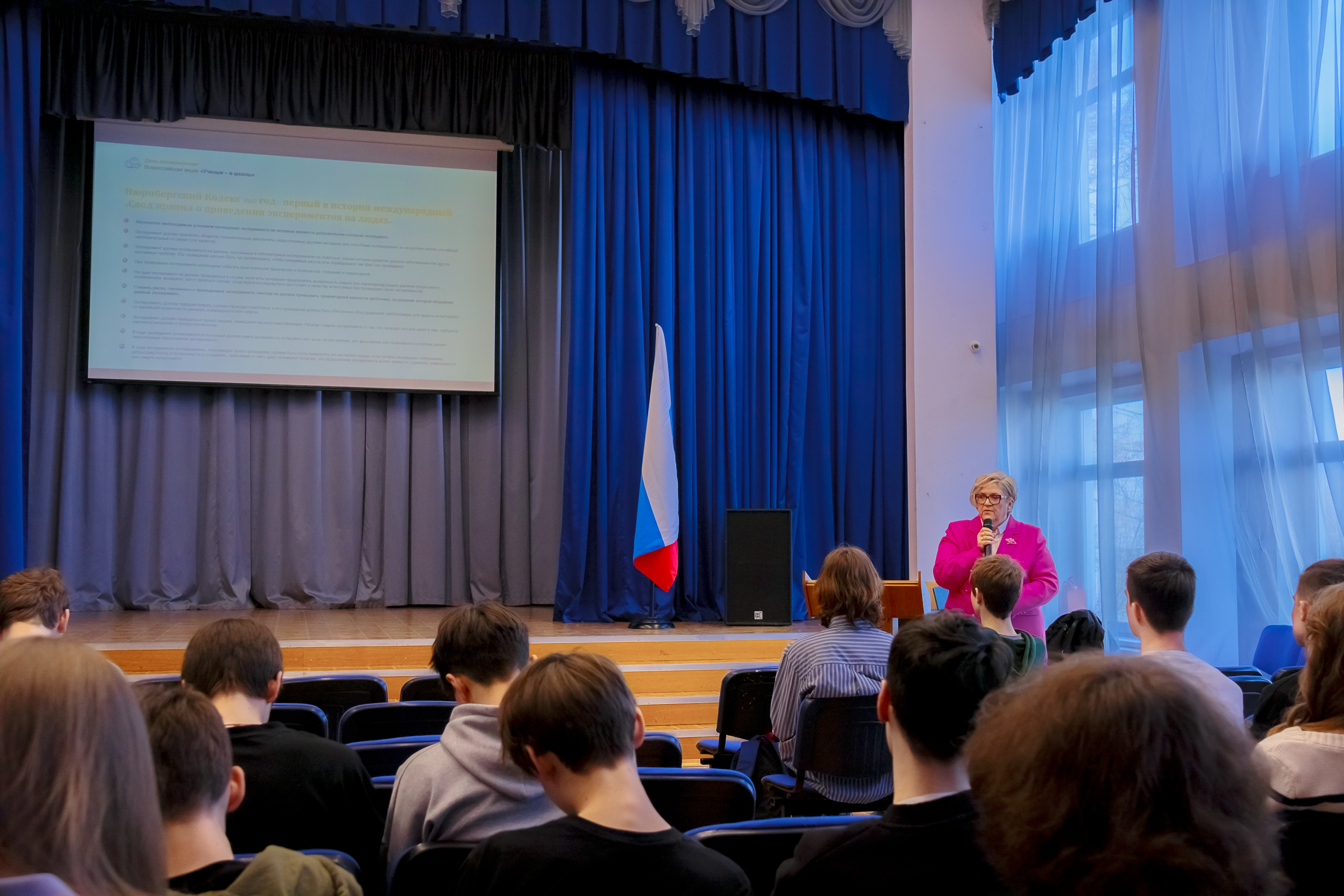 А заведующая кафедрой философии образования философского факультета МГУ Елена Владимировна Брызгалина рассказала школьникам об освоении космоса, о гуманности использования животных в научных целях, о биоэтике и космических экспериментах. Такие лекции помогают молодым людям задуматься о сложных этических вопросах, связанных с прогрессом науки и техники. Они способствуют формированию у школьников более глубокого и ответственного отношения к научным исследованиям и их последствиям.