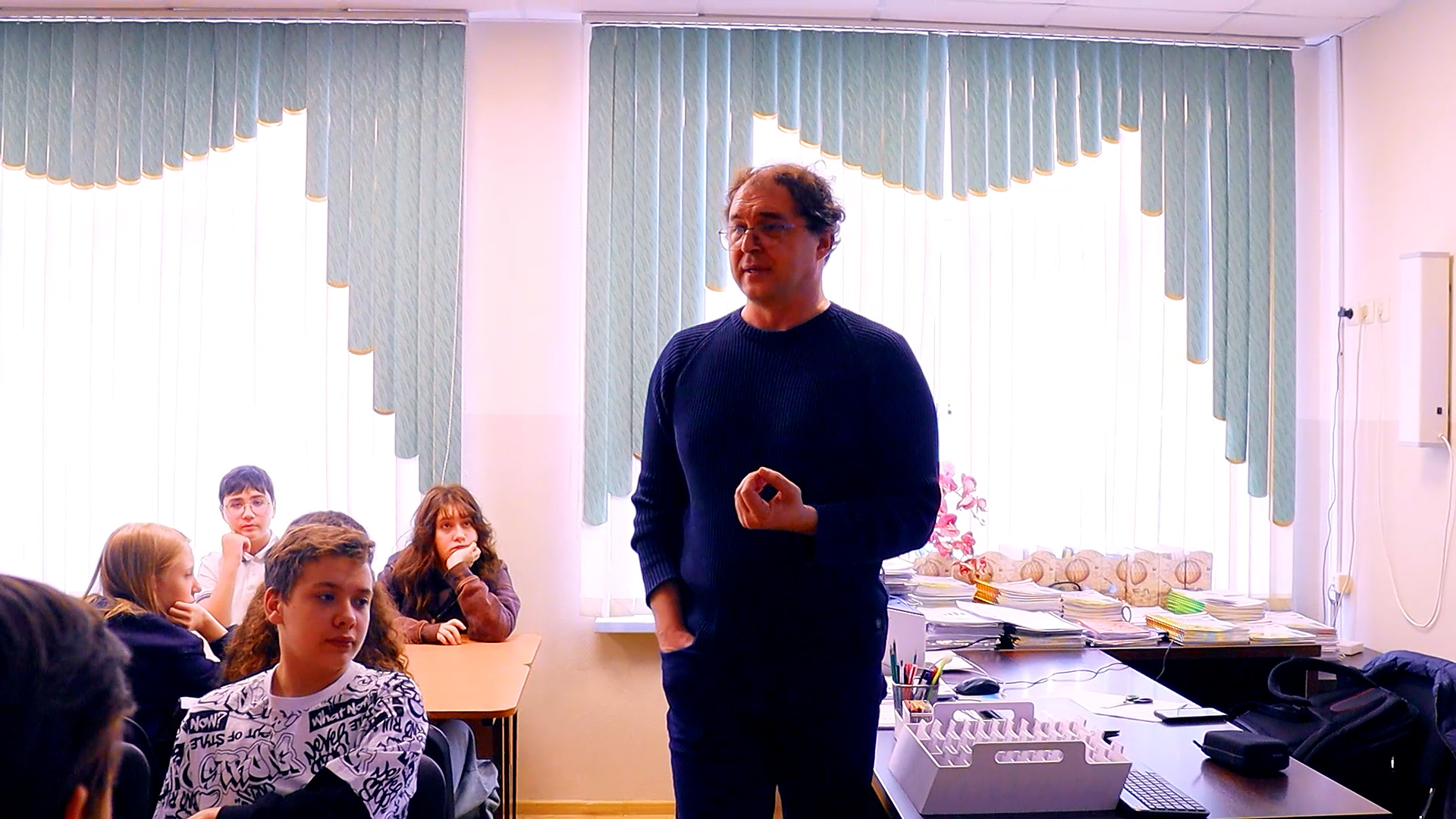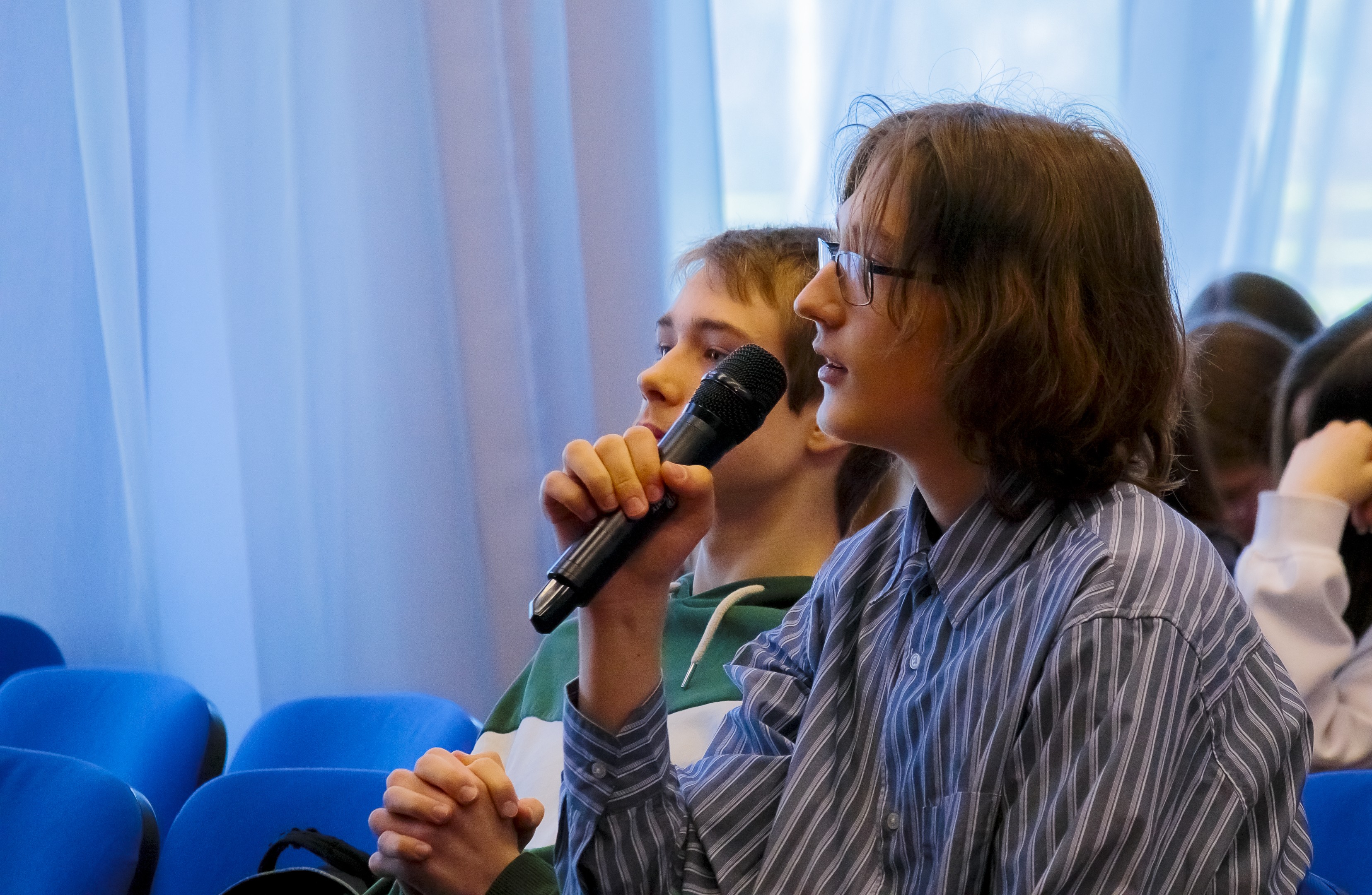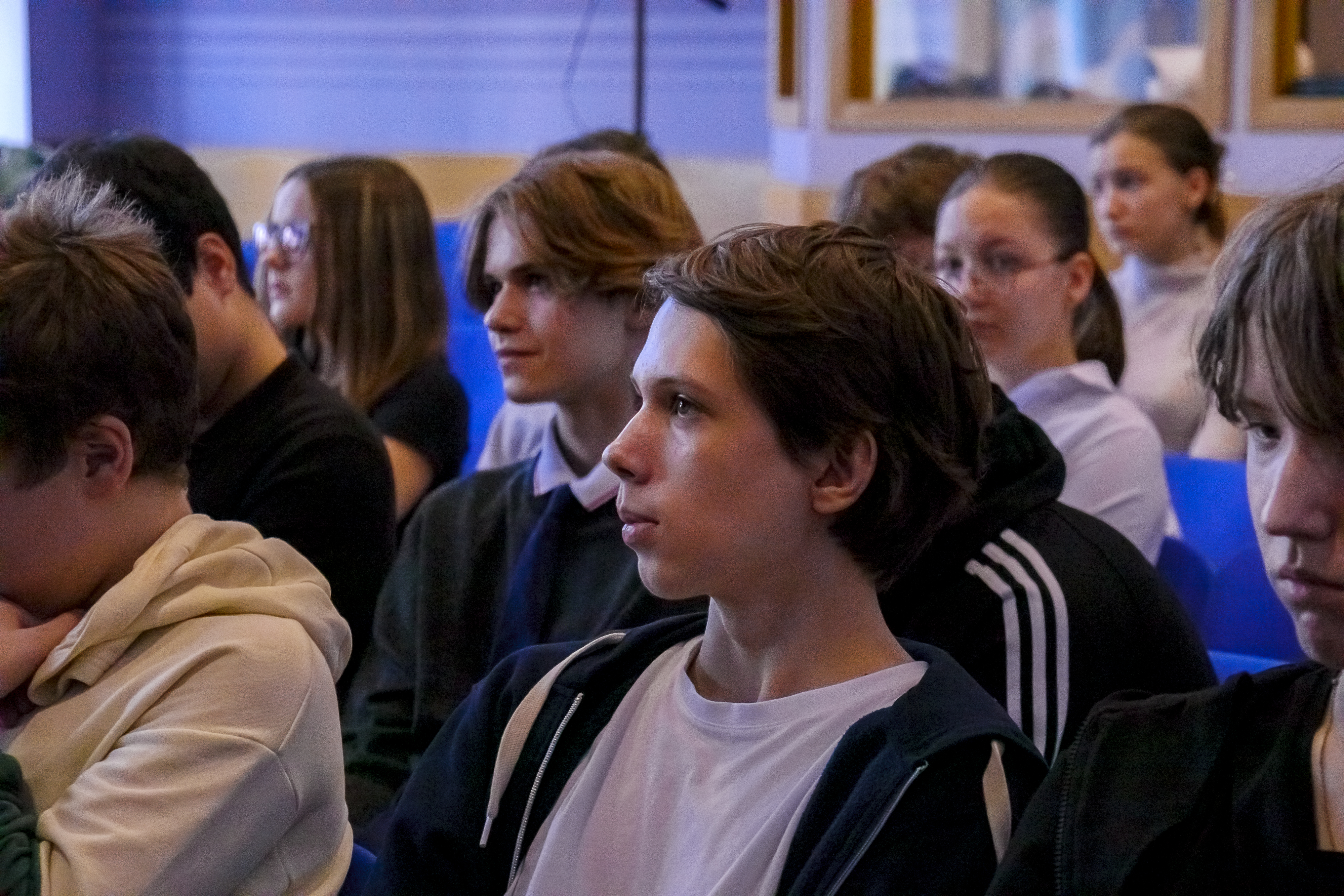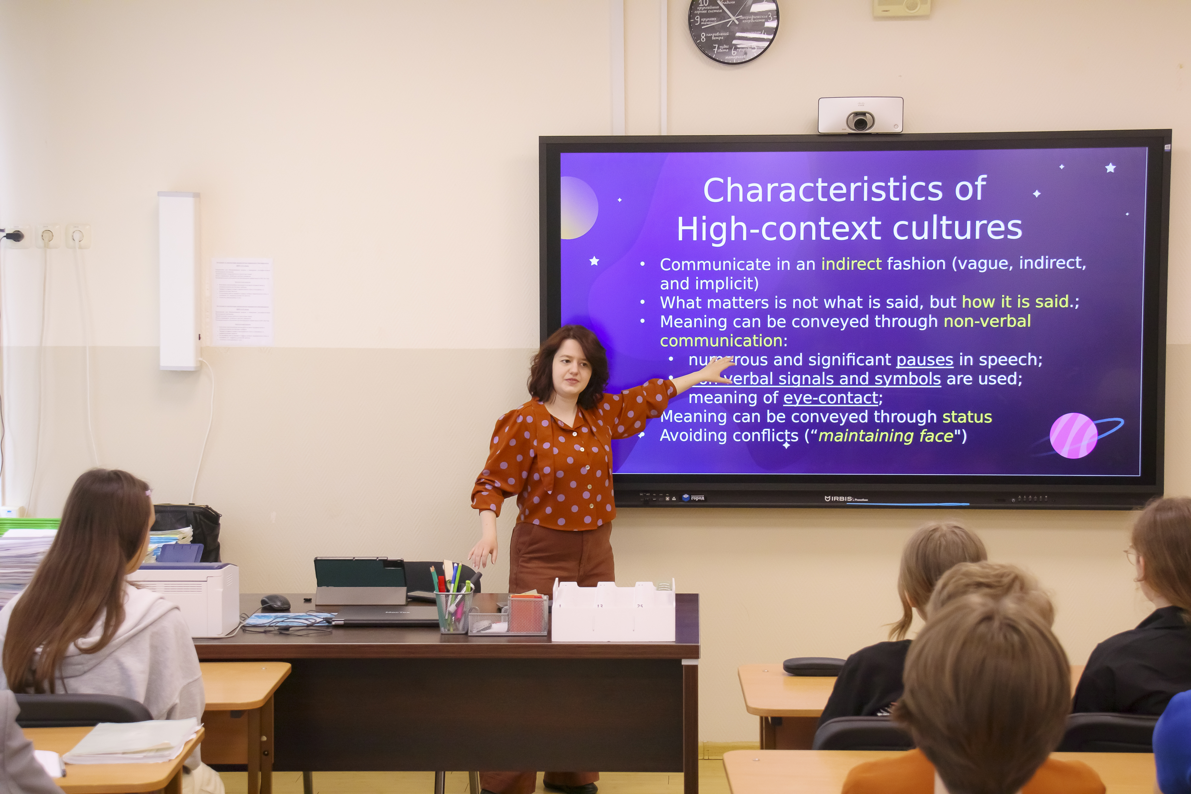 О коммуникации на Международной космической станции ученикам десятых классов рассказала преподаватель кафедры лингвистики, перевода и межкультурной коммуникации МГУ Елизавета Леонидовна Сахнина. Примечательно, что лекция прошла на английском языке. Ученики узнали о специфике общения в условиях космоса и о том, какие языки используются астронавтами разных стран.