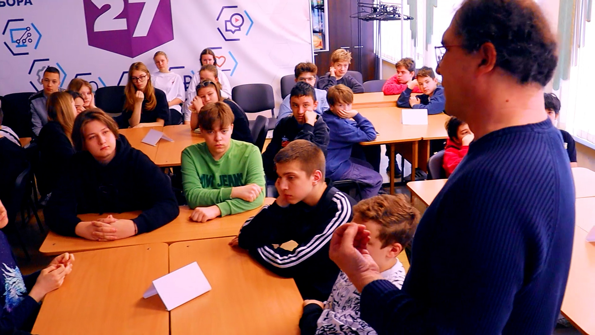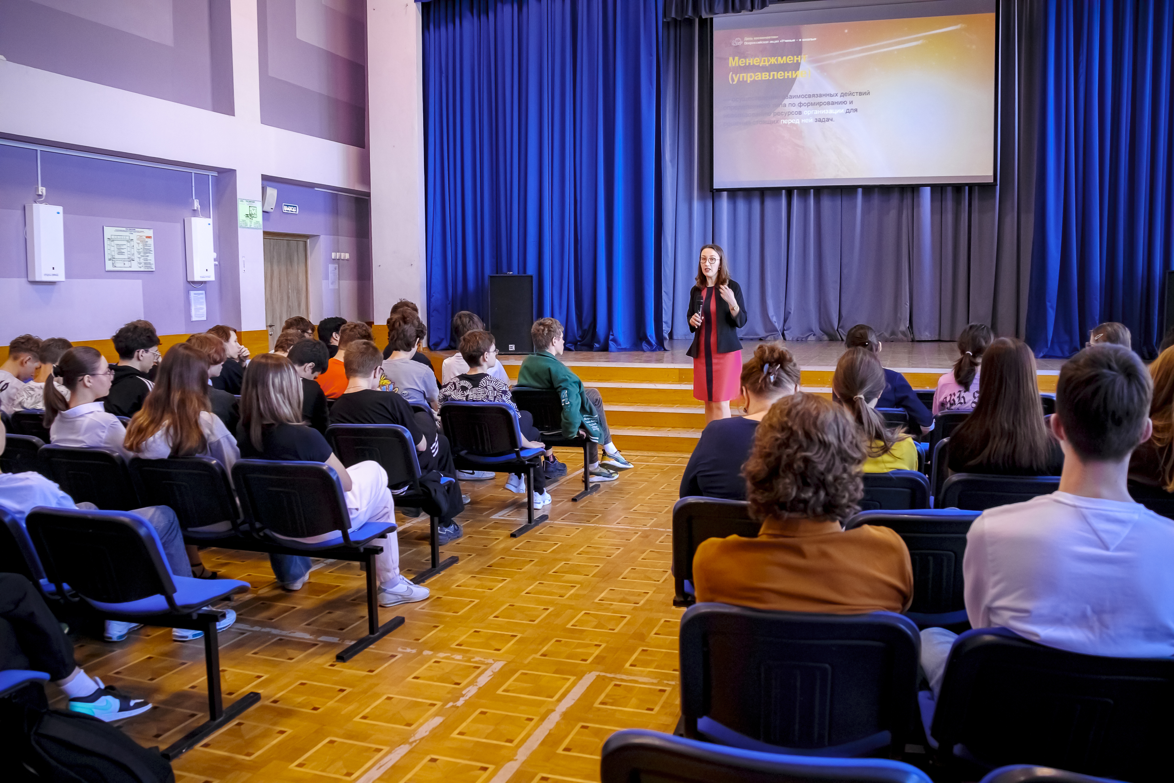 Ученики восьмых, девятых и десятых классов узнали о пяти столпах менеджмента. Юлия Валерьевна Евстафьева, кандидат экономических наук и доцент МГУ, поговорила с ребятами об объектах управления, функциях менеджмента, постановке целей и планировании их достижений. Школьники получили возможность расширить свои знания в области менеджмента и лучше понять принципы управления.